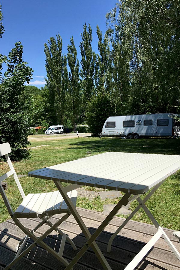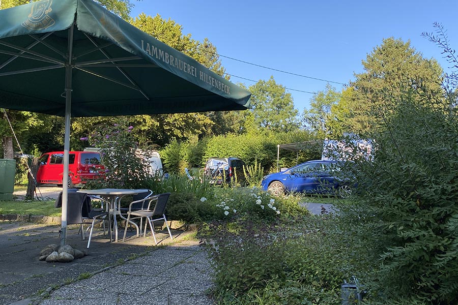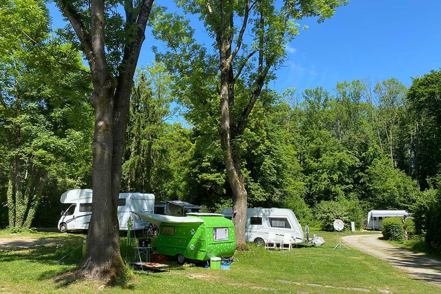 Unsere Stellplätze eignen sich für Wohnmobile, Wohnwagen und Zelte und liegen teils schattig unter hohen Bäumen, teils auf freier Wiese. Je nach Verfügbarkeit ist auch das Übernachten im angekuppelten Gespann möglich – ideal für eine entspannte Zwischenübernachtung. Dafür stehen unparzellierte, überwiegend geschotterte Flächen zur Verfügung.