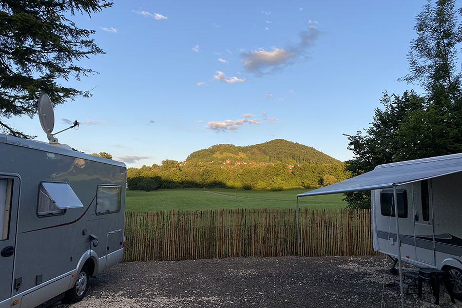 Der Campingplatz Aichelberg liegt ruhig und naturnah am Albtrauf und ist der ideale Ausgangspunkt für Wanderungen, Radtouren und Ausflüge auf die Schwäbische Alb. Gleichzeitig sorgt die verkehrsgünstige Lage nahe der Autobahn A8 dafür, dass sich der Platz hervorragend als Zwischenstopp auf der Reise in den Süden oder zurück eignet.
